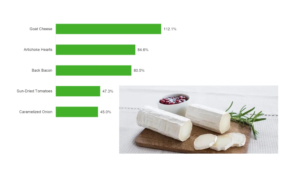 Mediterranean toppings are also seeing a surge, with artichoke hearts and sun-dried tomatoes popping up on pizzas to a greater extent. This could reflect consumers’ increasing desires for global flavours, with 19% of consumers indicating they are more interested in trying pizza with global toppings or ingredients than they were two years ago.** Both items are also more premium than your standard pizza fare, showcasing the upmarket potential of the classic food.